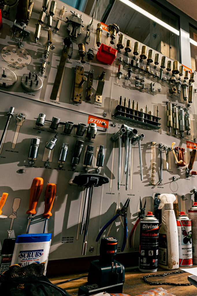 In unserer Werkstatt verbinden wir handwerkliche Erfahrung mit modernster Technik. Ausgestattet mit hochwertigen Maschinen wie dem Franzen Kettenschleifautomaten sowie professionellen Reinigungs- und Prüfstationen sorgen wir dafür, dass Ihre Geräte zuverlässig, präzise und einsatzbereit bleiben.